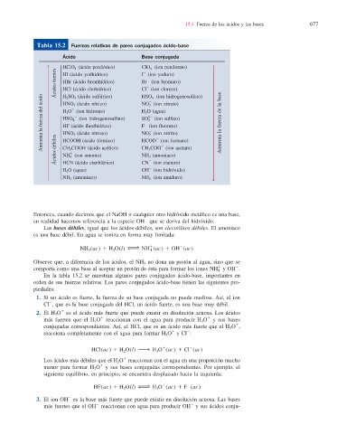 Tabla 15.2 Fuerzas relativas de pares conjugados ácido-base