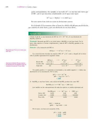En el ejemplo 15.6 se muestra cómo se hacen los cálculos del pH para una disolución