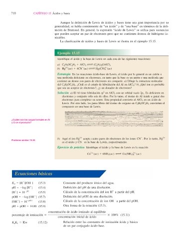 La clasifi cación de ácidos y bases de Lewis se ilustra en el ejemplo 15.15.