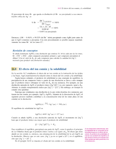 Entonces, (100 2 0.48)%, o 99.52% del Br habrá precipitado como AgBr justo antes de