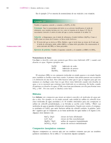 En el ejemplo 2.9 se muestra la nomenclatura de un oxiácido y un oxianión.