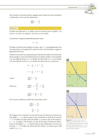 n . n . La figura 15b muestra un rayo de luz que al refractase dismi- de refracción de dos medios: a) Si n ? n