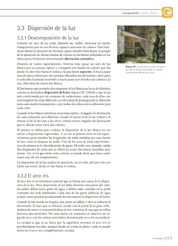 colores se denomina dispersión de la luz (figura 18). Debido a que la luz