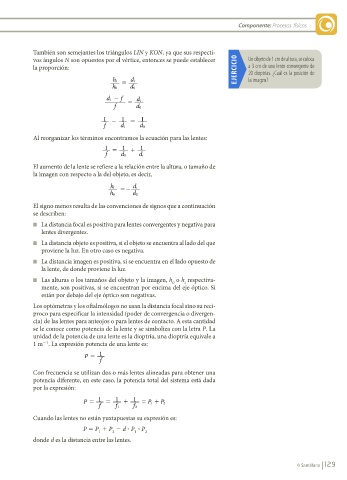 la proporción: EJERCICIO a 3 cm de una lente convergente de