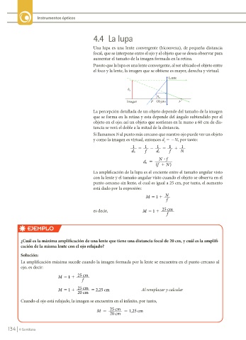 punto cercano sin lente, el cual es igual a 25 cm, por tanto, el aumento