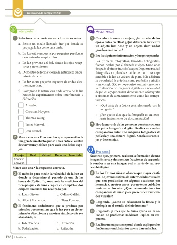 1 Relaciona cada teoría sobre la luz con su autor. 5 Cuando miramos un objeto, ¿la luz sale de los