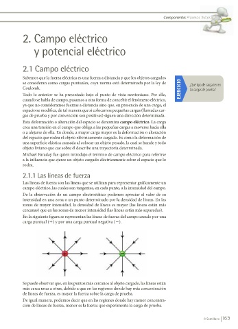 ción de líneas de fuerza, menor es la fuerza que experimenta la carga de prueba.