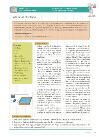 campo eléctrico determinan superfi cies equipotenciales. En la siguiente práctica de laboratorio se pre-