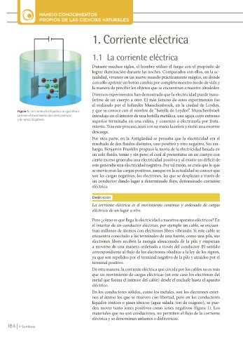 Figura 1. Un conductor líquido o un gas iónico y que se conoce con el nombre de “botella de Leyden”. Musschenbroek