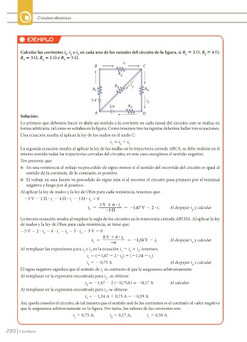 que le asignamos arbitrariamente en la figura. Por tanto, los valores de las corrientes son: