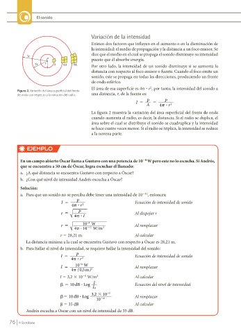 El área de esa superficie es 4p ? r , por tanto, la intensidad del sonido a