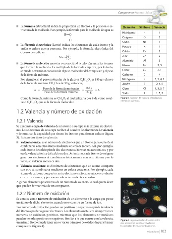 n La fórmula estructural indica la proporción de átomos y la posición o es- Elemento Símbolo Valencia