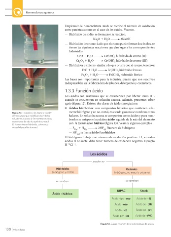 que colorea de rojo el papel de tornasol. con la terminación hídrico (figura 13). Veamos algunos ejemplos: