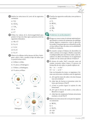 9 Realiza las estructuras de Lewis de las siguientes 12 Clasifi ca las siguientes moléculas como polares o