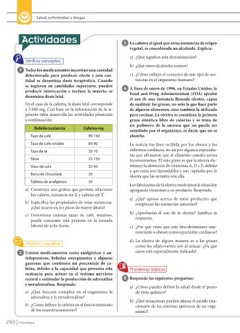 b) ¿Cómo infl uye la cafeína en el funcionamiento cionario de los sistemas químicos de un orga-
